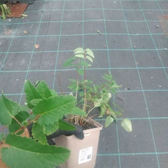 Velká sazenice je zasazená v hranatém květináči o velikosti 11×11×11 cm.